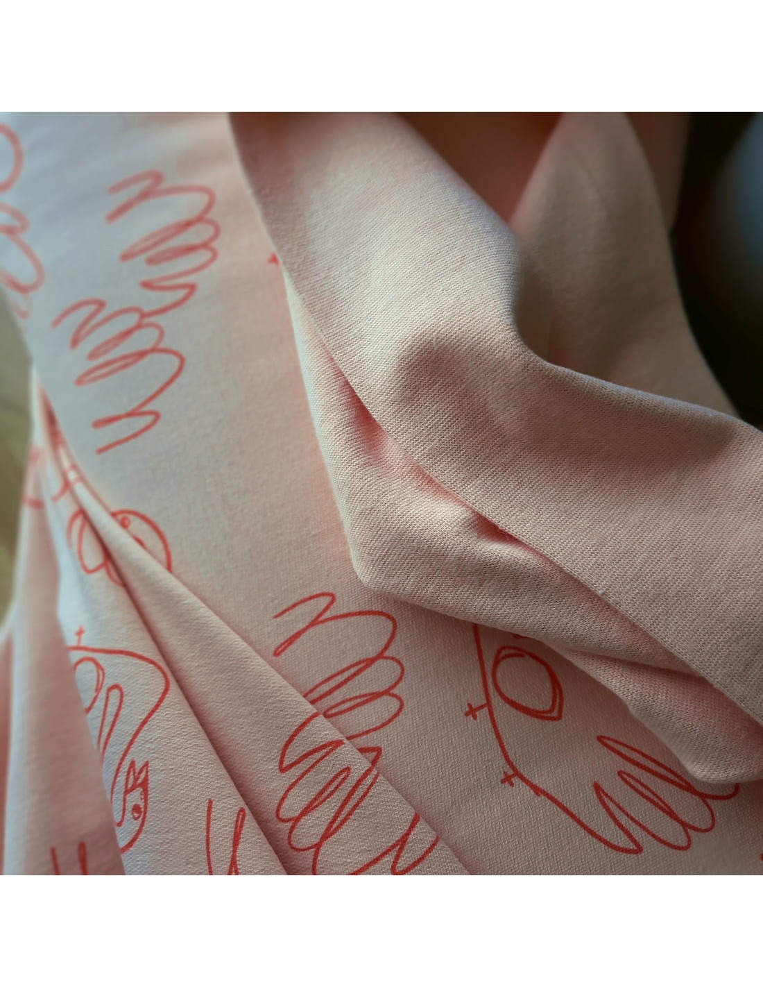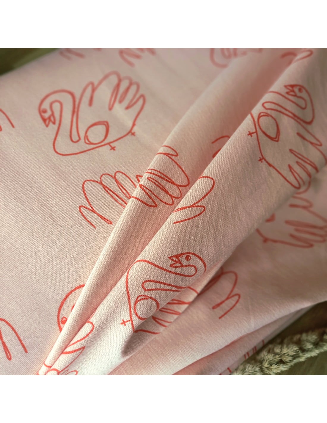 De jolis cygnes dessinés sur fond saumon, doux et girly à la fois. Appelé sweat d'été, sweat léger, ou encore sweat bouclette, ce French Terry possède une maille légèrement plus lourde que le jersey et avec des bouclettes au dos. Plombant et très confortable à porter, sa légère élasticité naturelle, de par son tricotage, est renforcée par un petit pourcentage d’élasthanne.