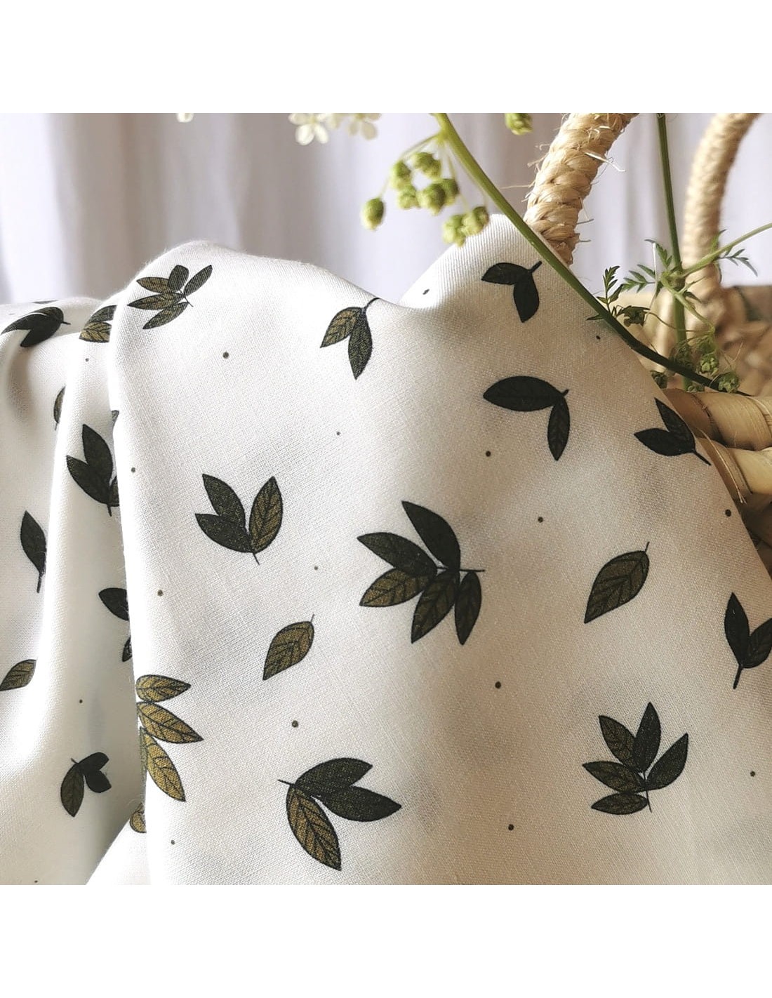 Popeline légère et 100% coton biologique, aux jolies petites feuilles sur fond blanc. Polyvalente et facile à coudre, elle conviendra pour beaucoup de projets et surtout pour toute la famille grâce à ses motifs unisexe. La popeline convient également pour des accessoires ou encore des objets décoratifs. Les motifs de ce tissu sont dessinés à Niort par la créatrice Atelier Rubael.