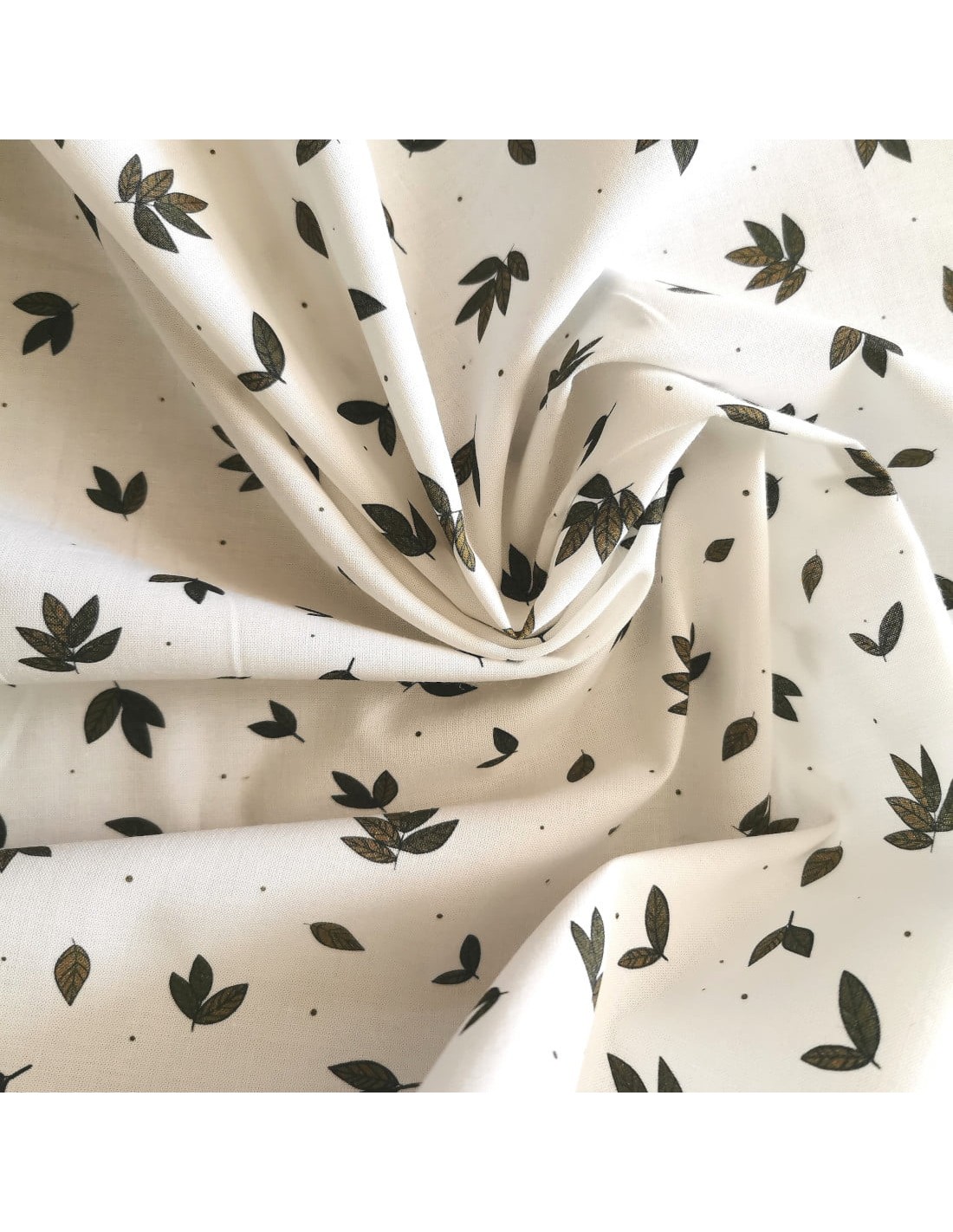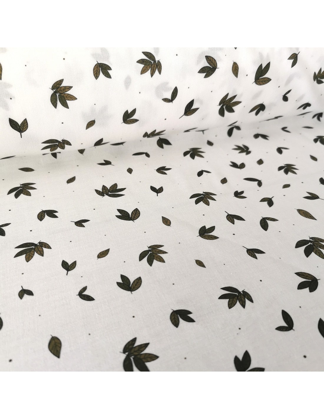 Popeline de coton biologique, Feuilles vertes, Fond blanc