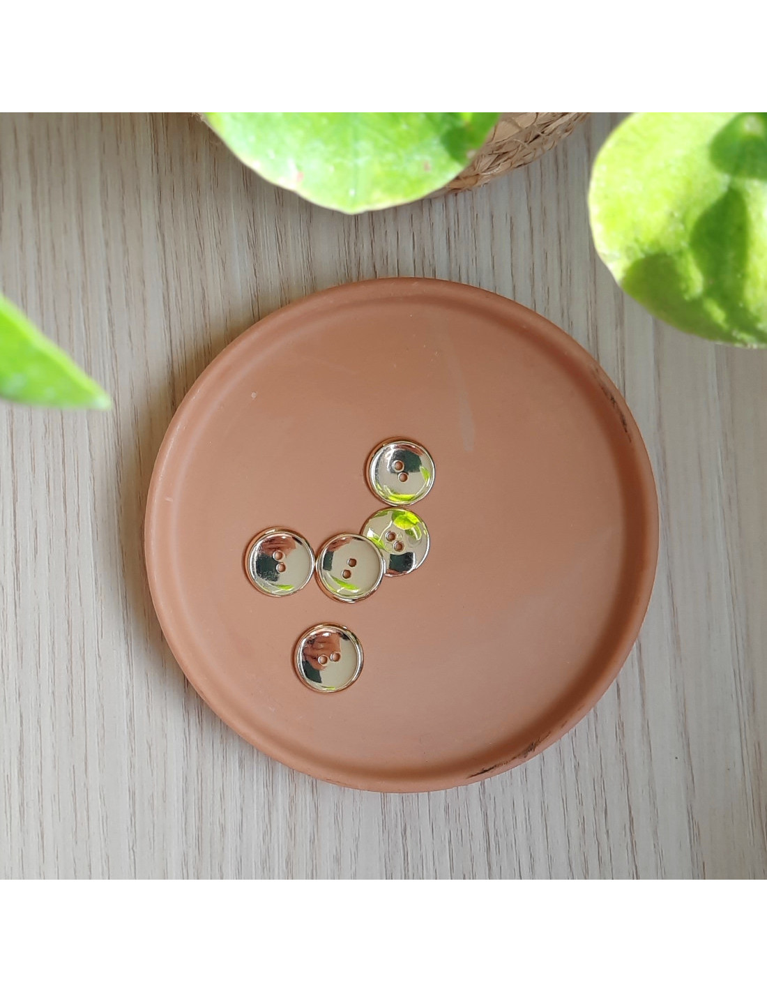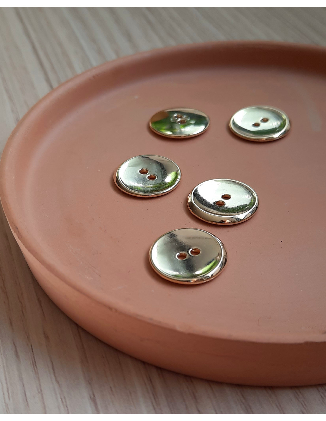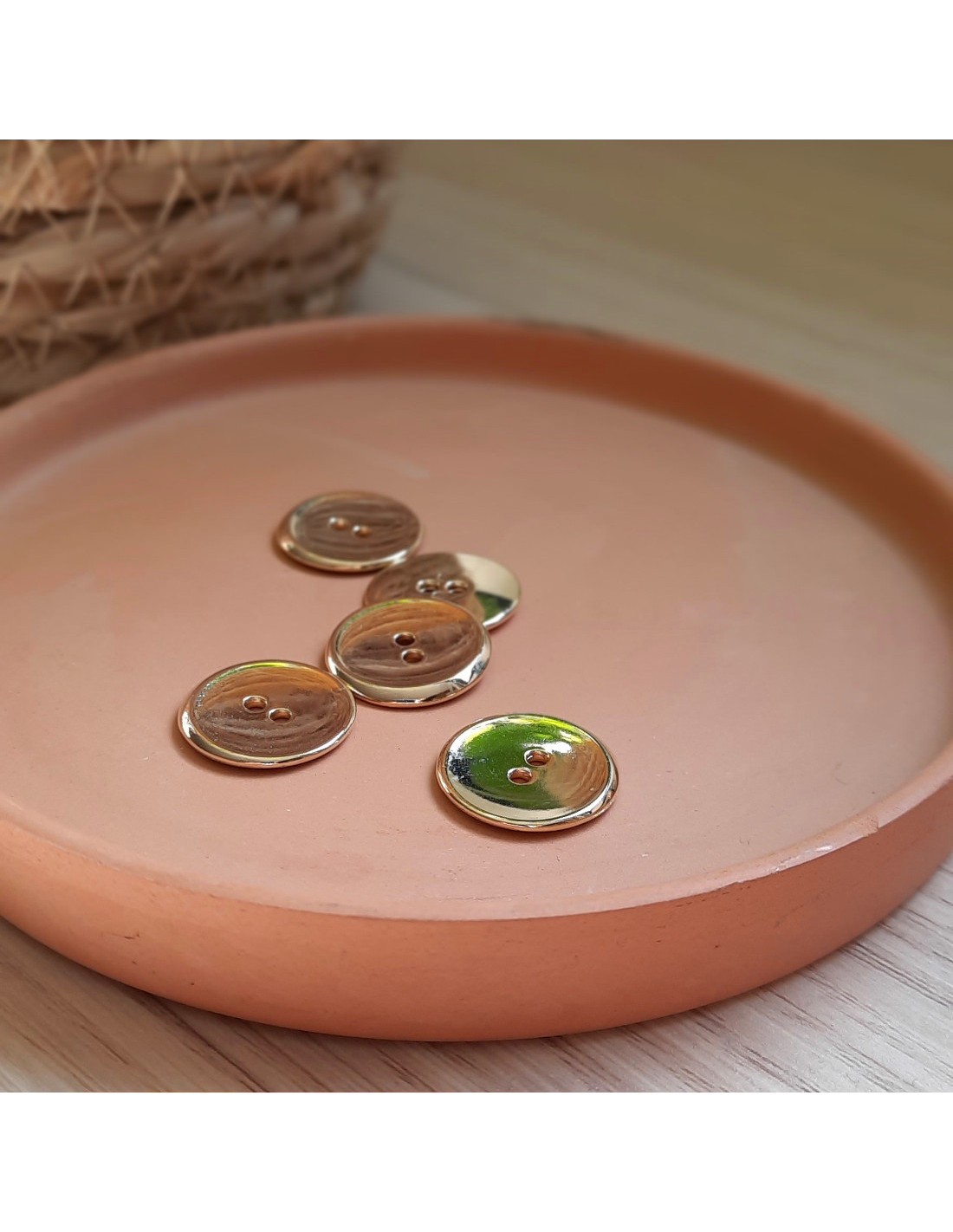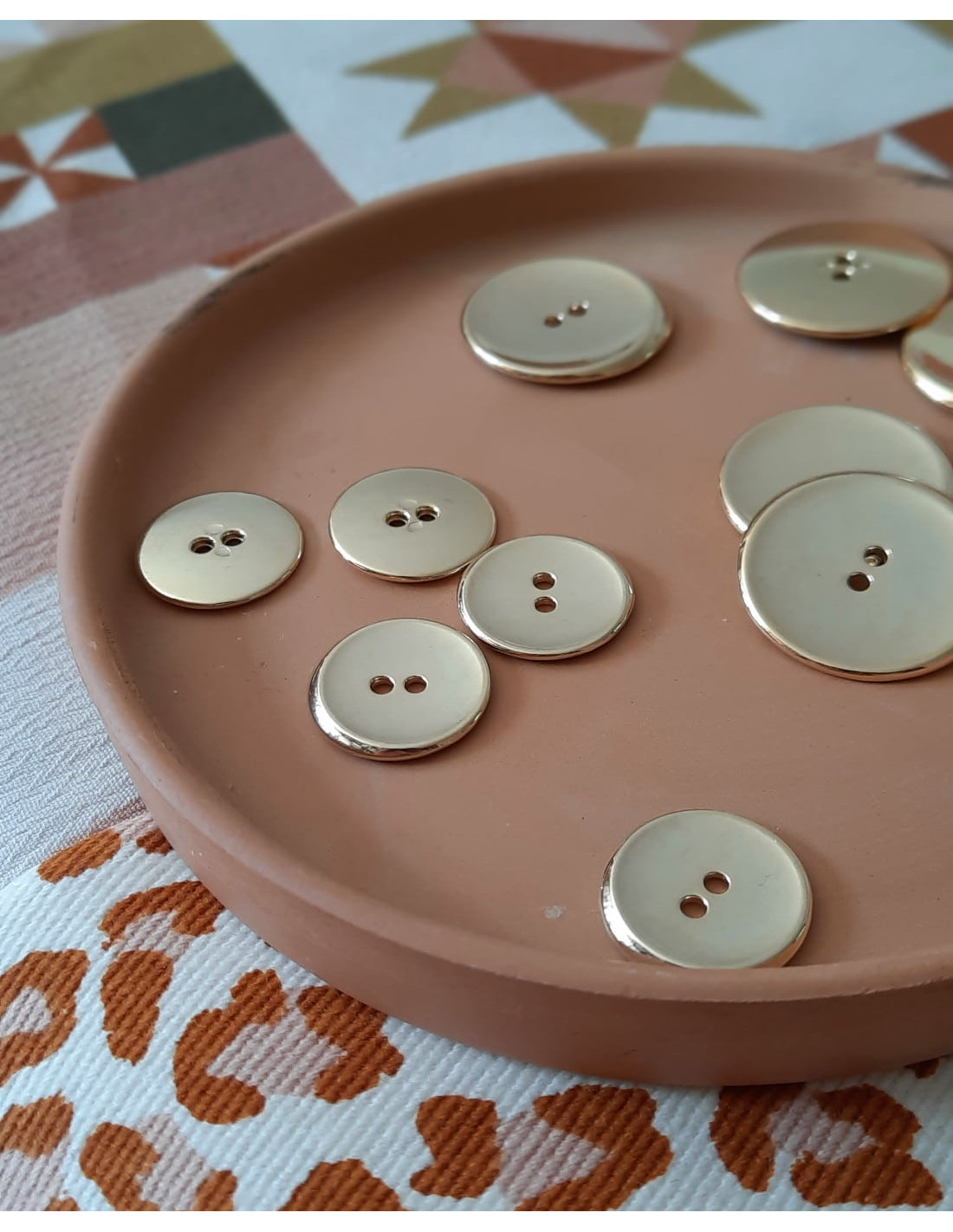 Ces boutons métalisés sont plats et légèrement incurvés sur les côtés.