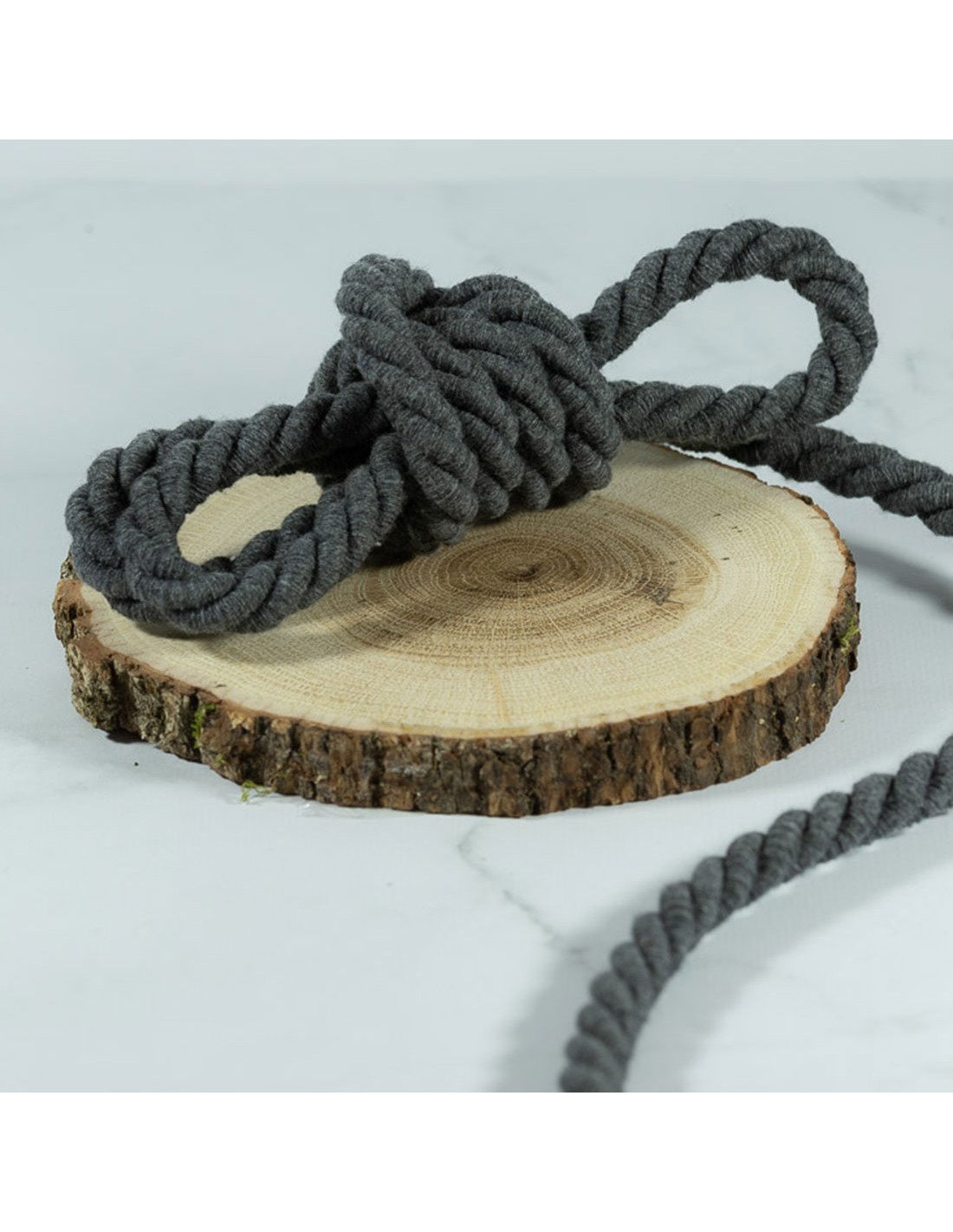 Cordon de coton torsadé, tenue rigide, gris foncé (10mm)