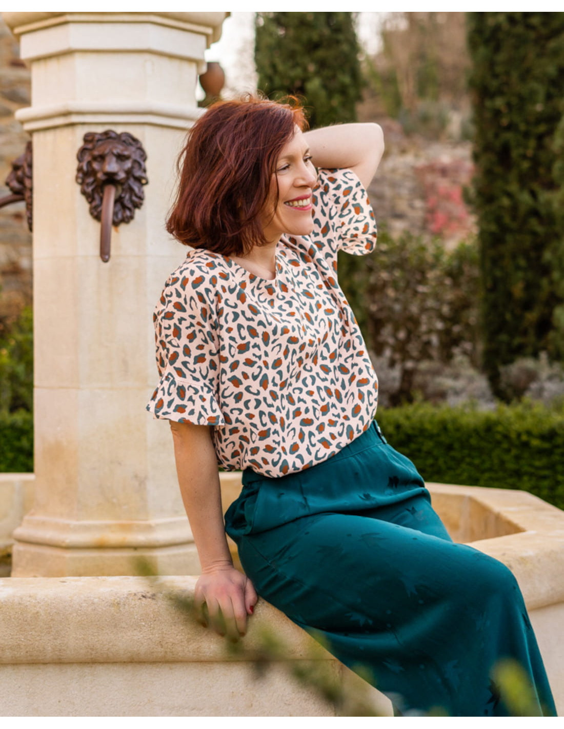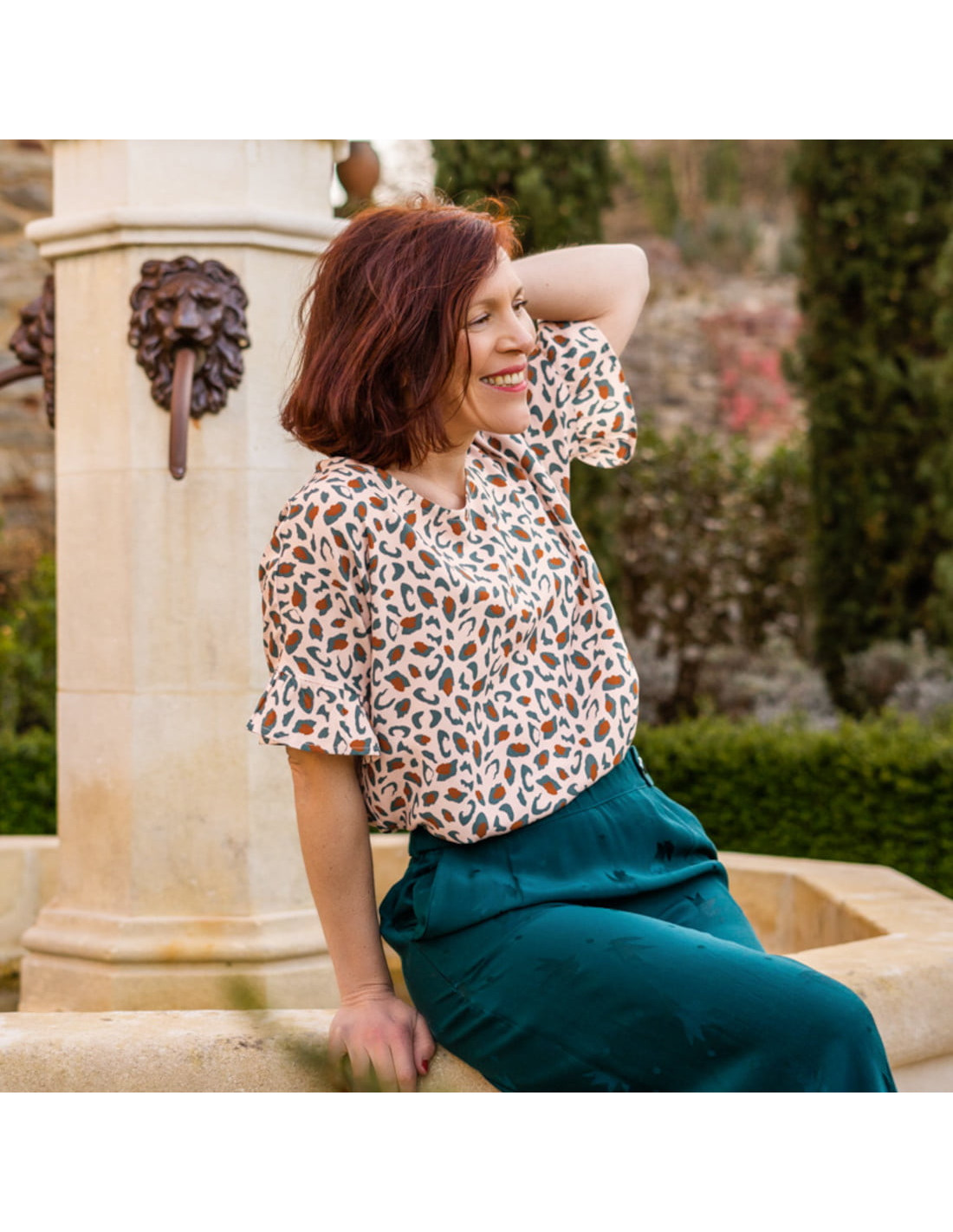 - Se marie très bien avec le jacquard de viscose Streli vert dark lagune (pantalon sur les photos)