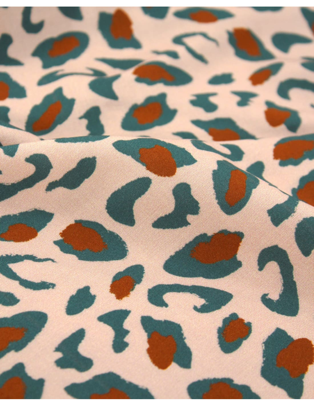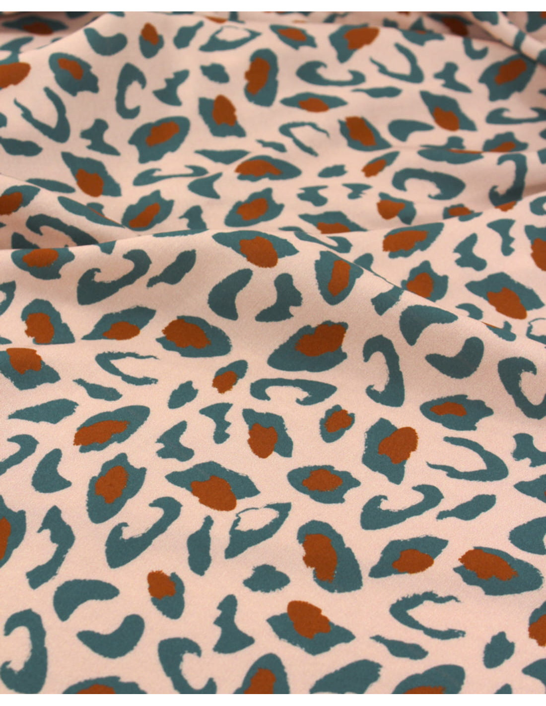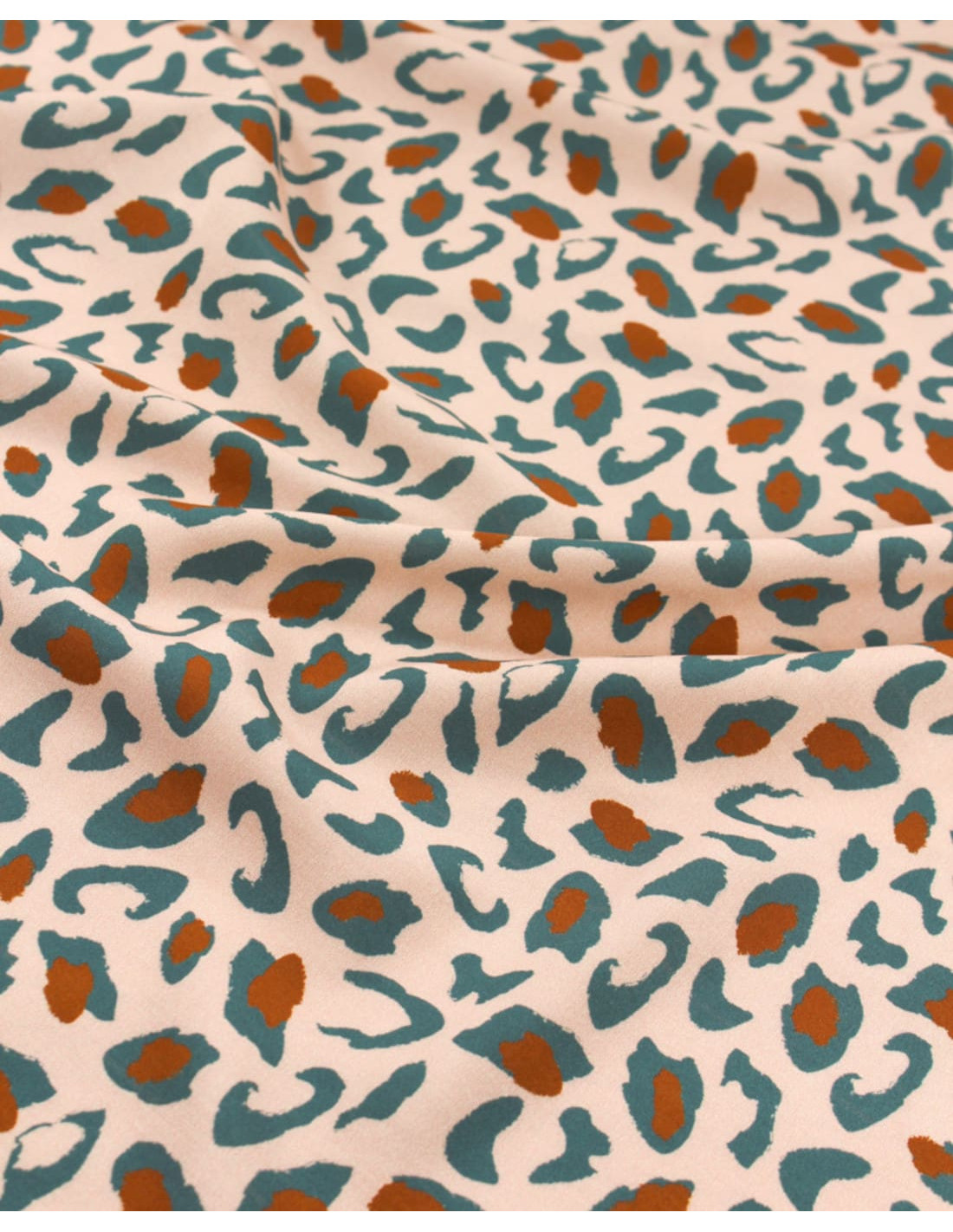 Une viscose à l'iconique imprimé léopard, aux taches vert eucalyptus et caramel, sur fond nude. Légère et à armure toile, elle sublimera vos créations d'une belle fluidité !