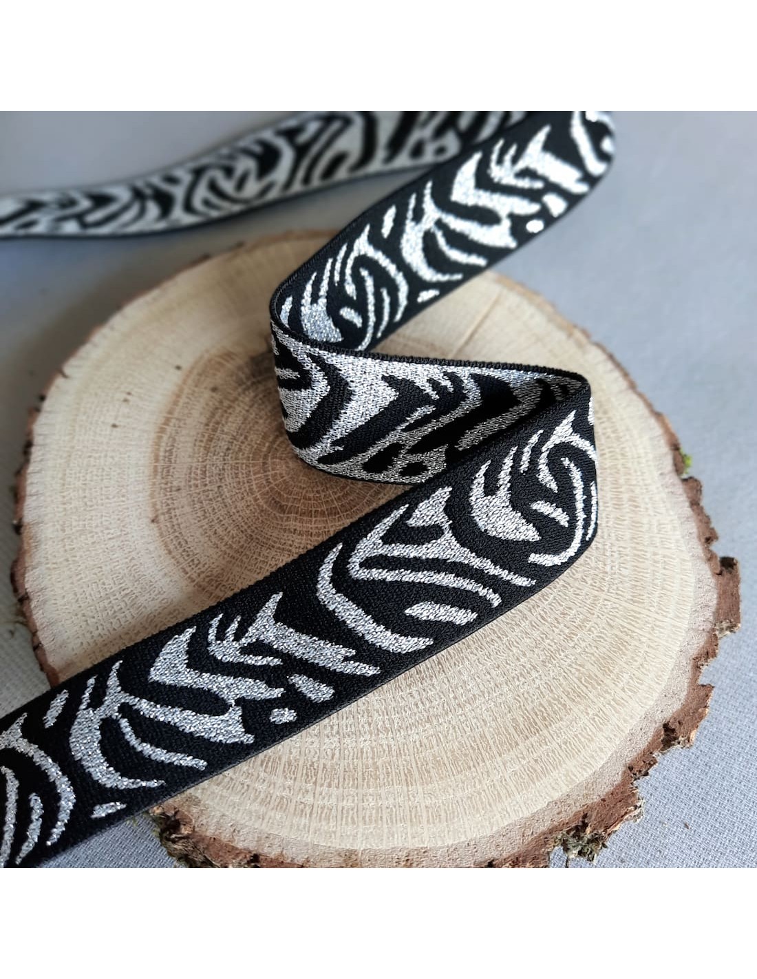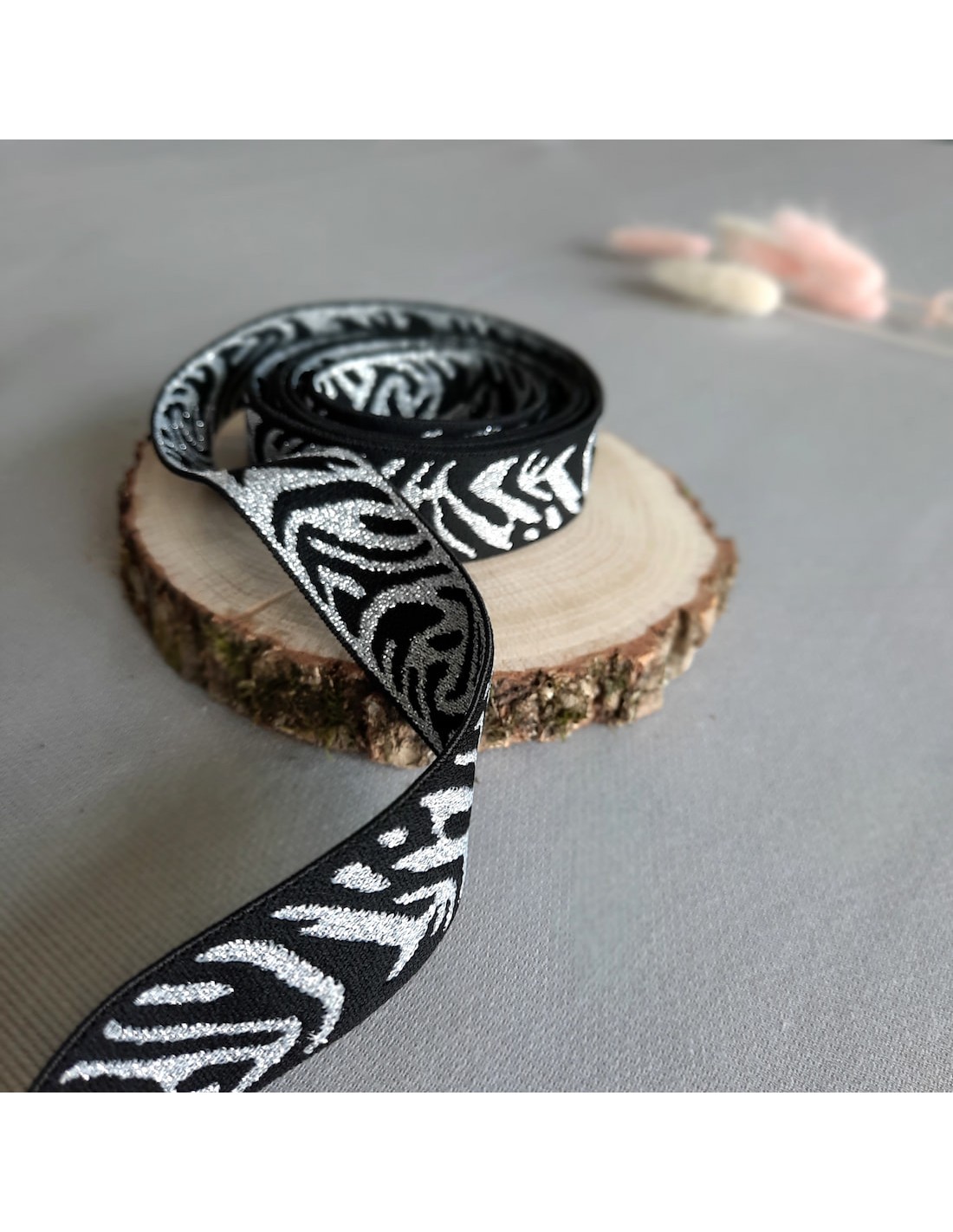 Elastique lurex, zébrures argentées et noires, 2,5cm