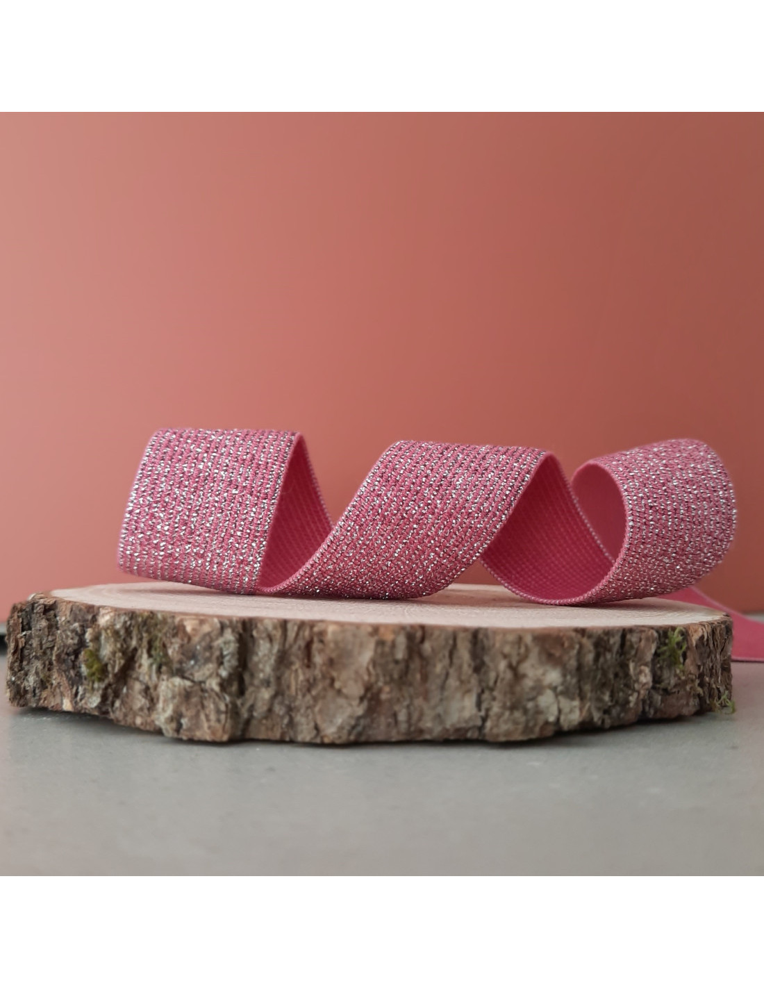Elastique lurex, argenté sur fond rose fuchsia, 2,5cm