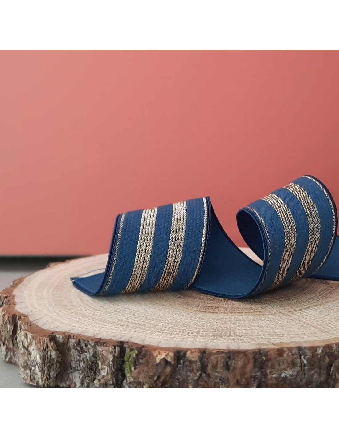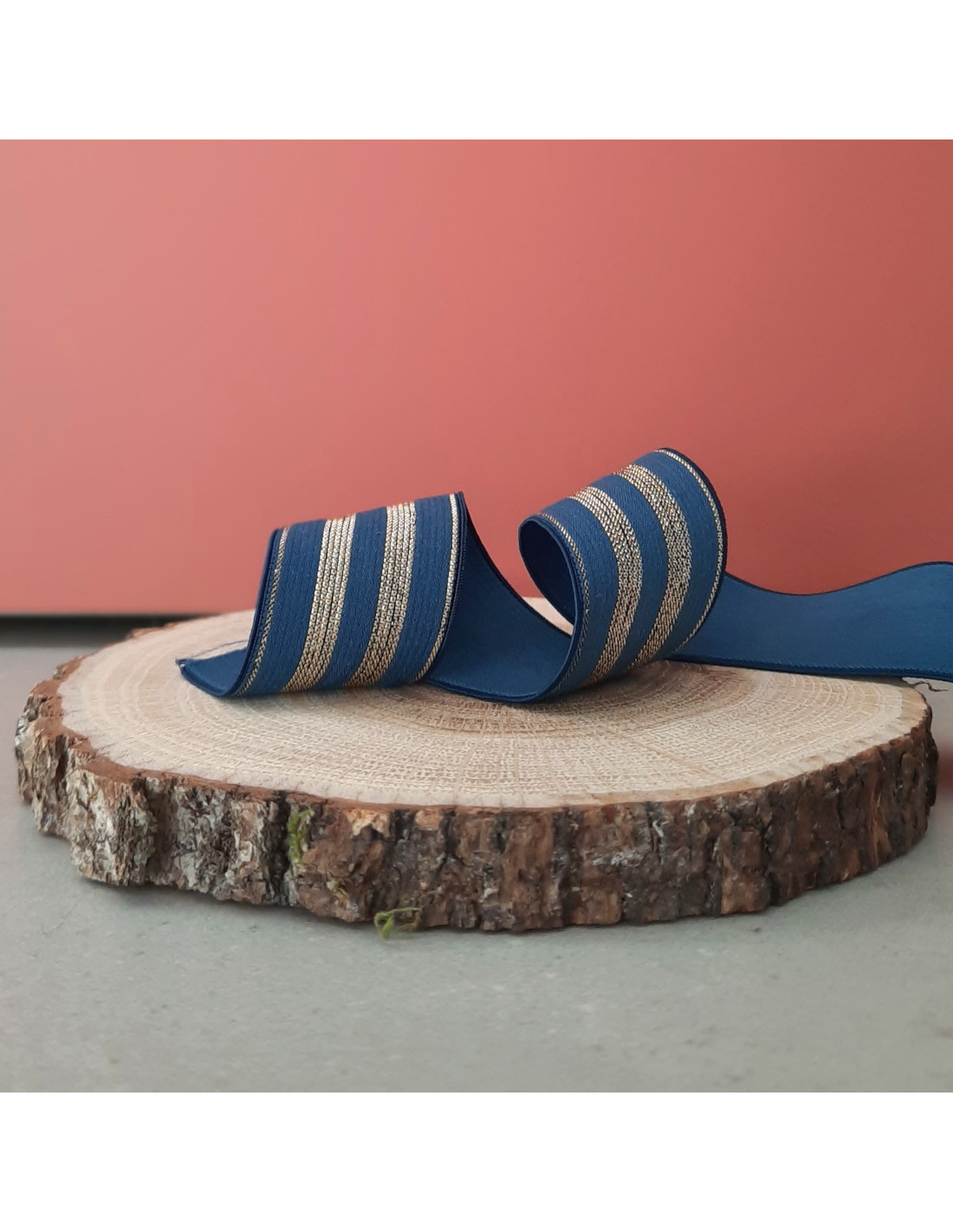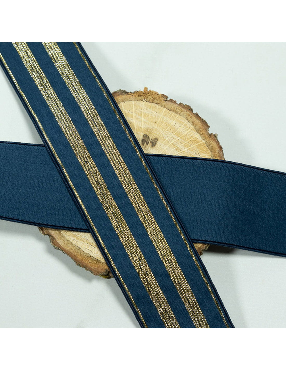Elastique lurex, rayures dorées et bleu marine, 3cm