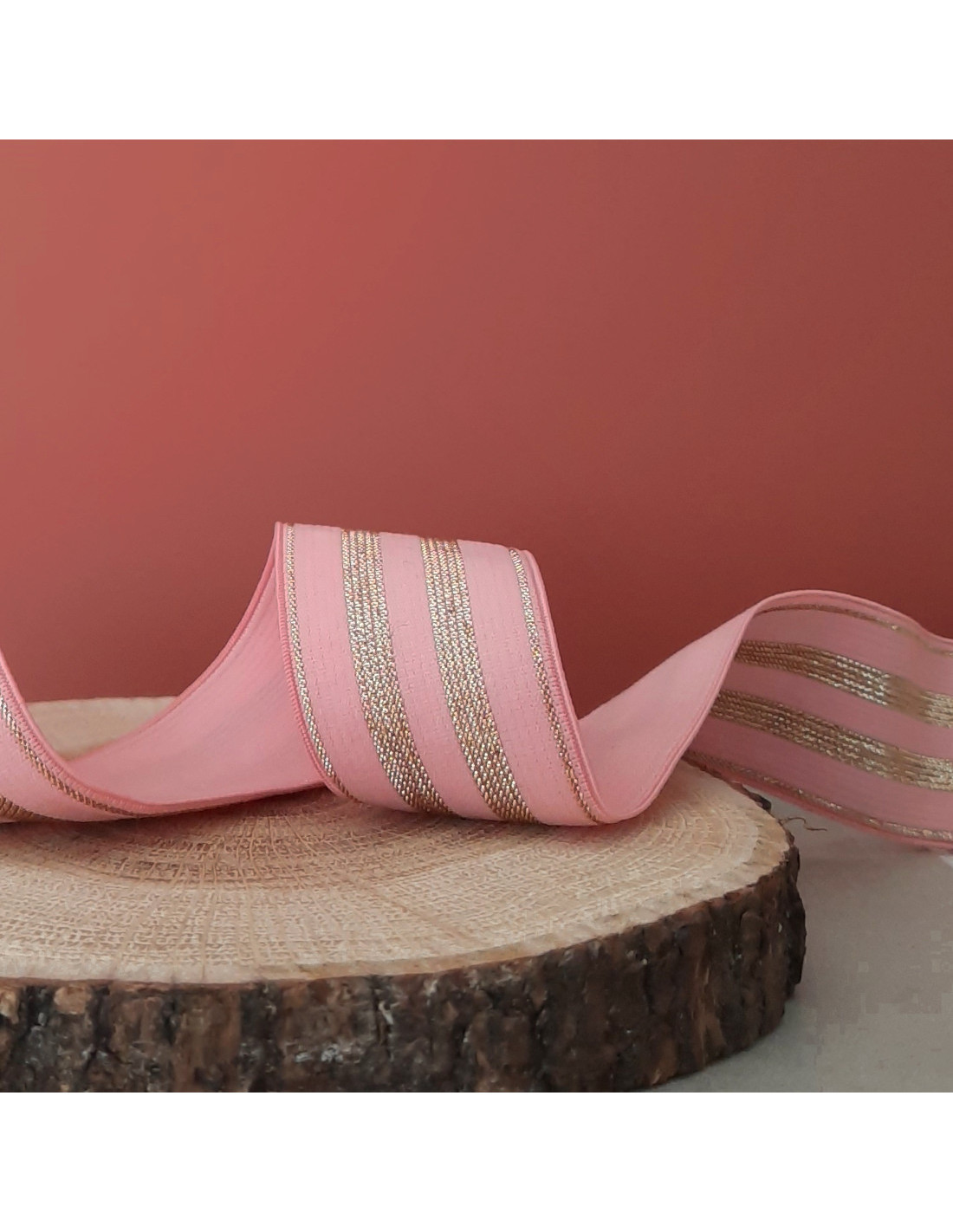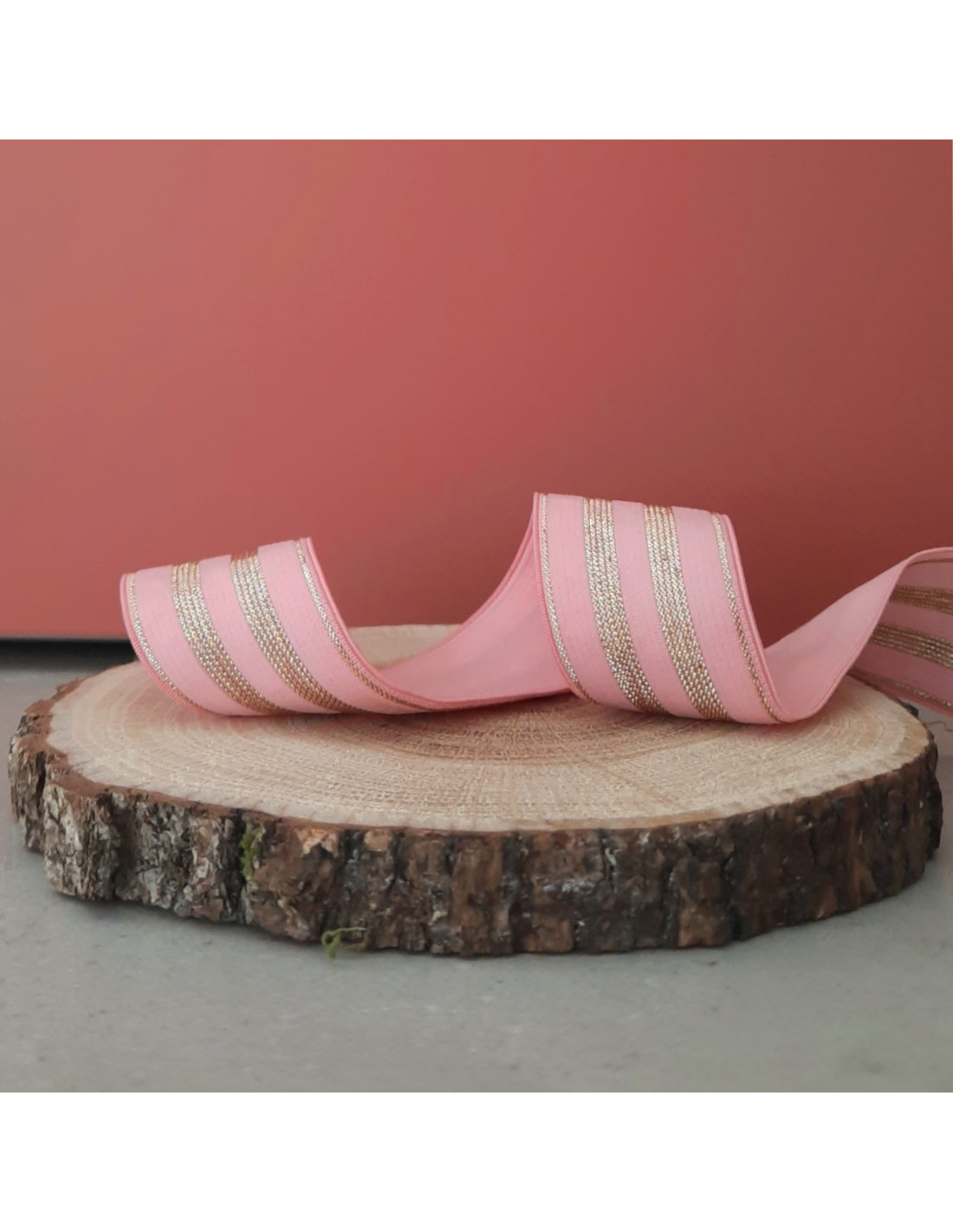 Elastique lurex, rayures dorées et roses, 3cm