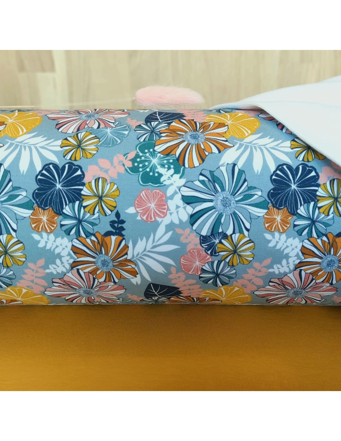 Jersey de coton biologique, aux superbes fleurs sur fond bleu orage. Ce jersey est particulièrement léger, plombant et très confortable à porter. Sa légère élasticité naturelle, de par son tricotage, est renforcée par un petit pourcentage d’élasthanne.