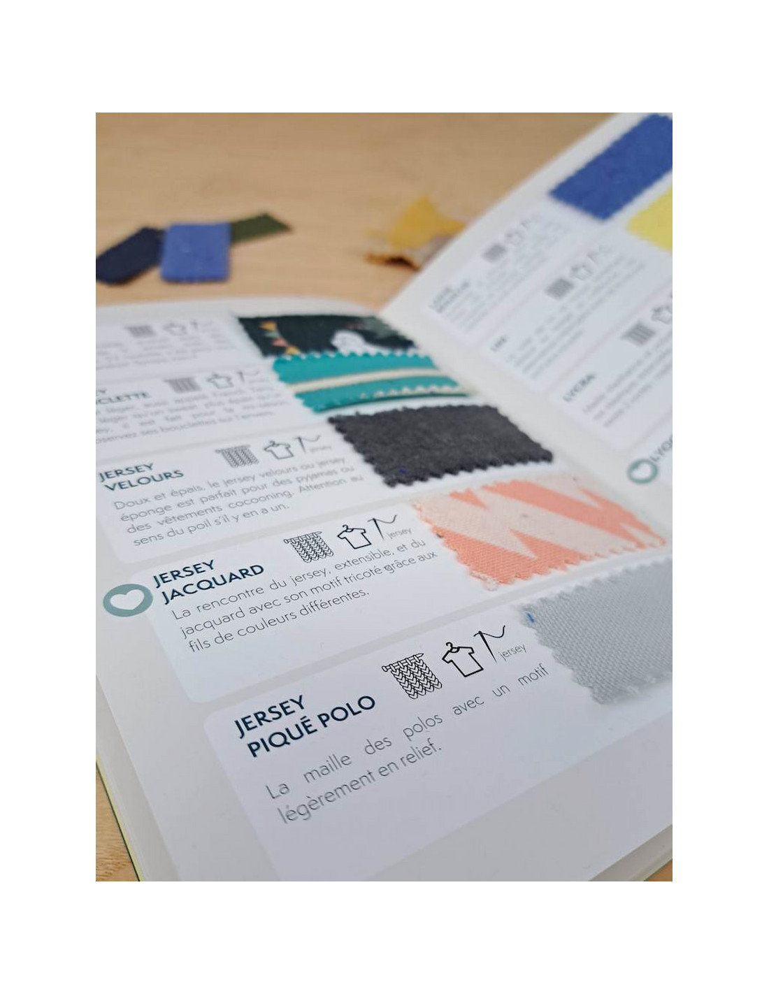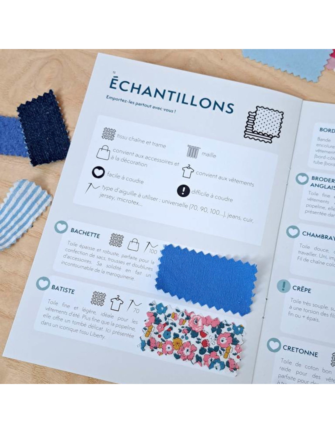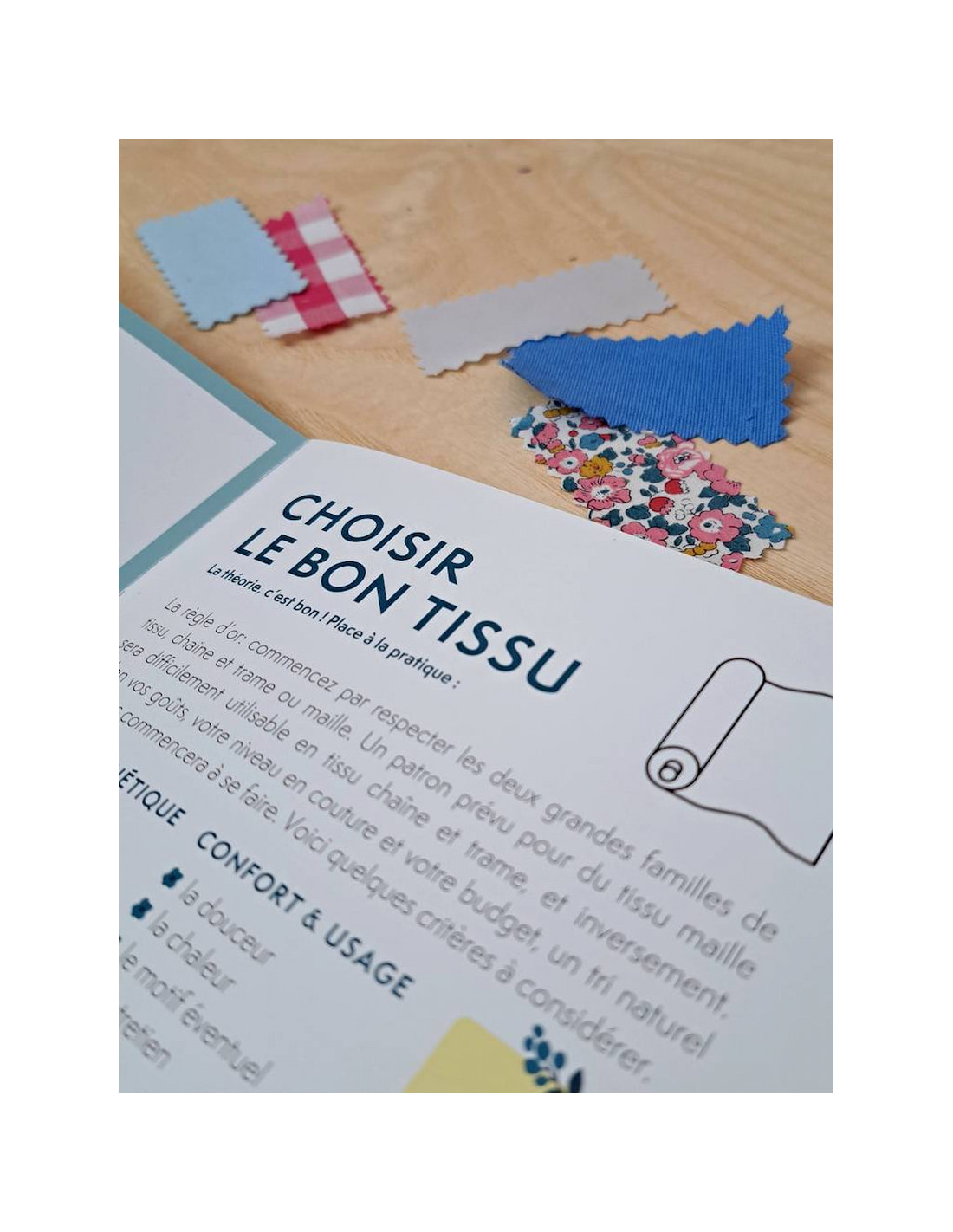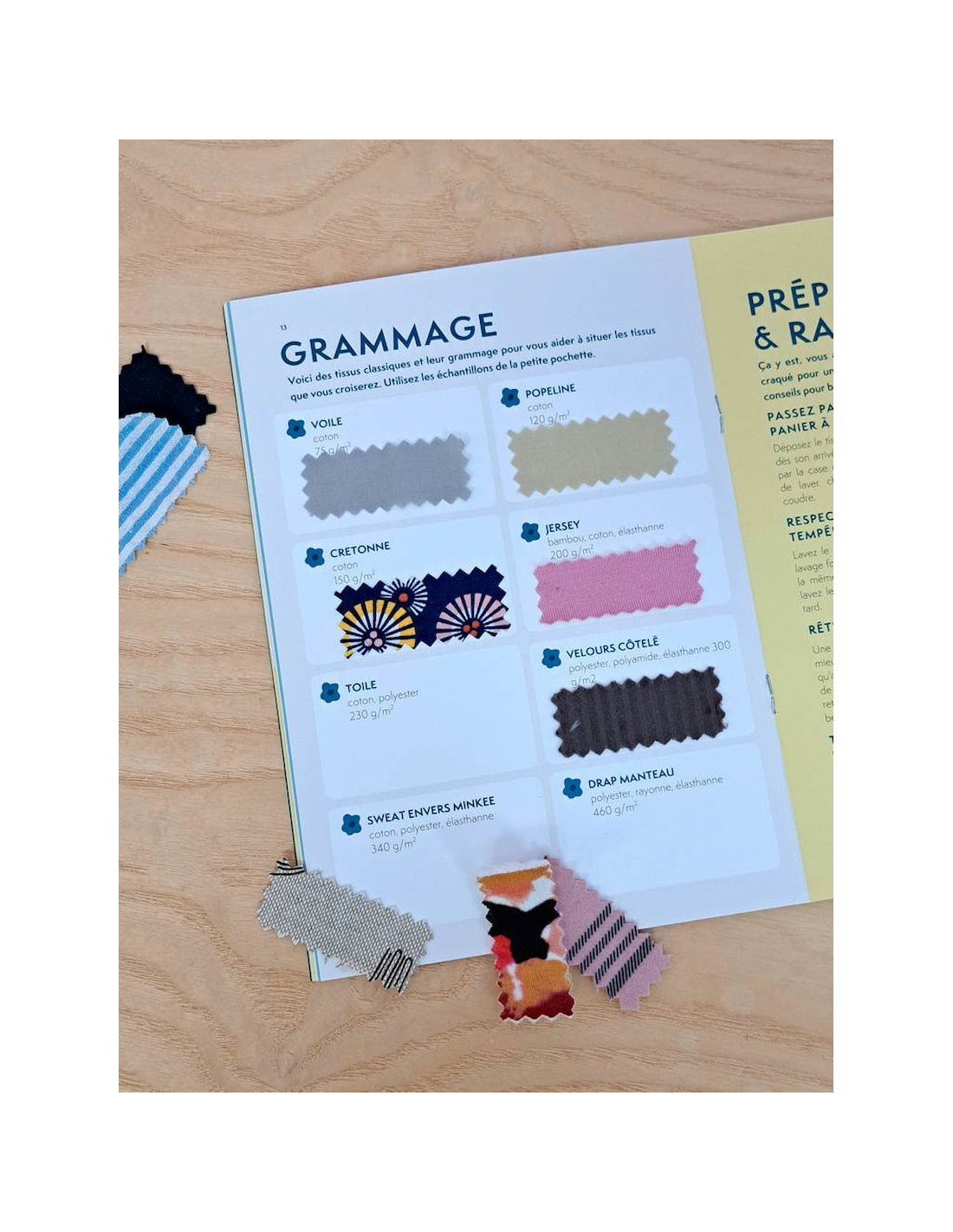 - Livret mémo de 27 pages : votre bible des tissus, à garder près de sa machine à coudre ou quand vous choisissez du tissu. Vous y trouverez :