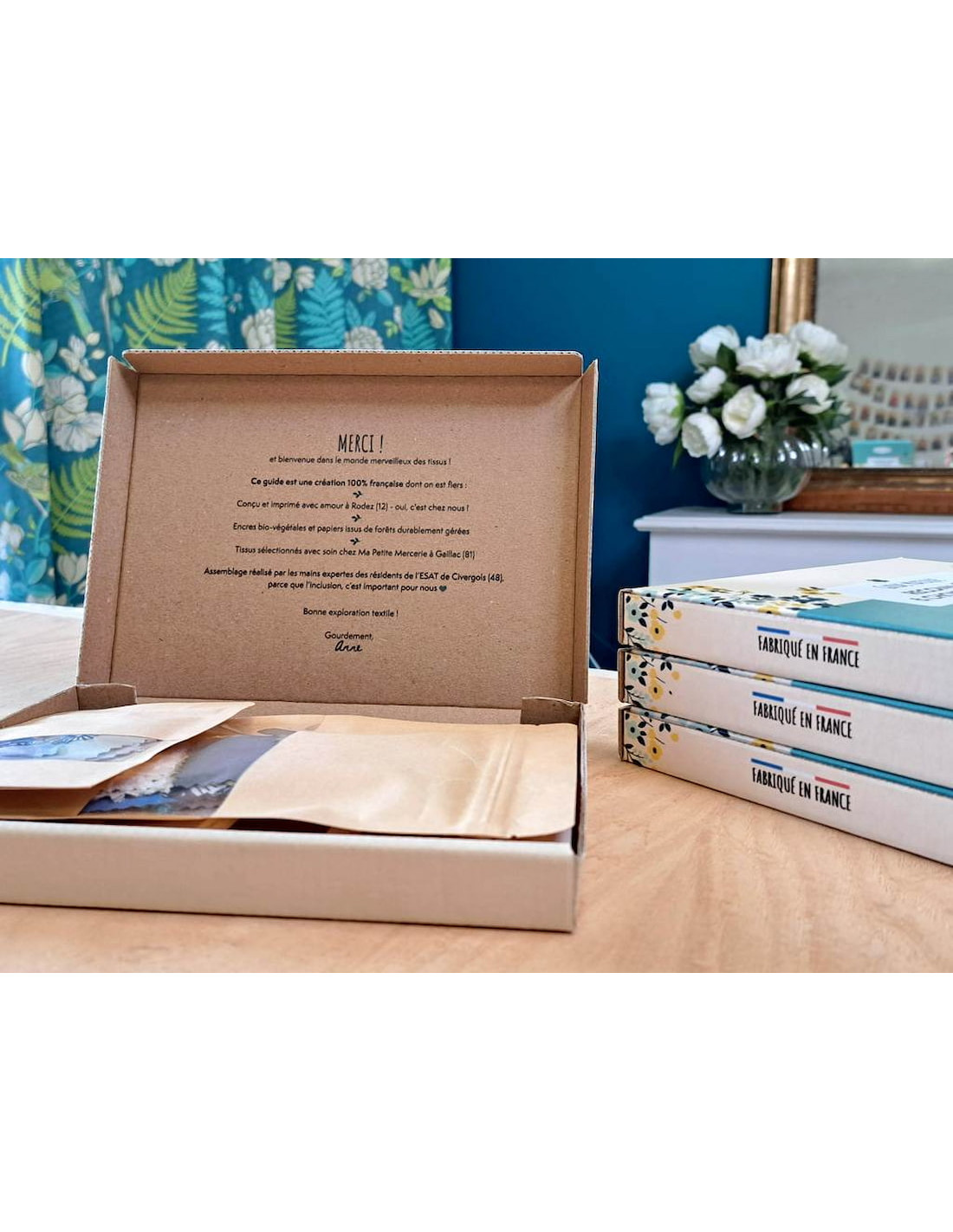 - 60 échantillons de tissus : recevez 60 échantillons de tissus soigneusement sélectionnés avec leurs pastilles autocollantes. Utilisez-les pour créer votre référentiel personnel et mieux appréhender les différents textiles. Ce pense-bête ne vous quittera plus !