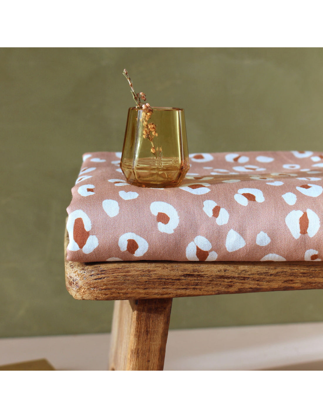 Le motif incontournable léopard, sous ses couleurs les plus douces ! Un rose tomette aux petites taches léopard crème et cannelle, assorties à la palette de la marque. Le coton est sublimé par son tissage satin, naturellement brillant, fluide et souple, avec une douceur naturelle.