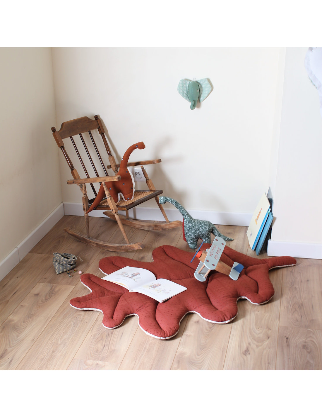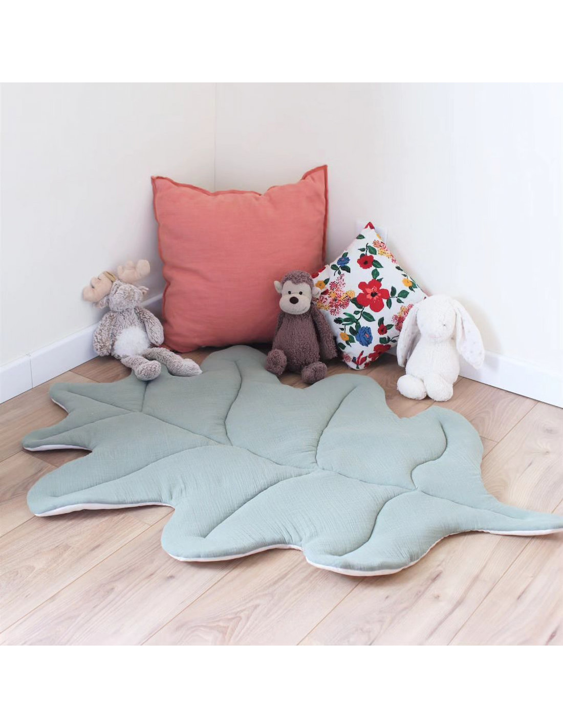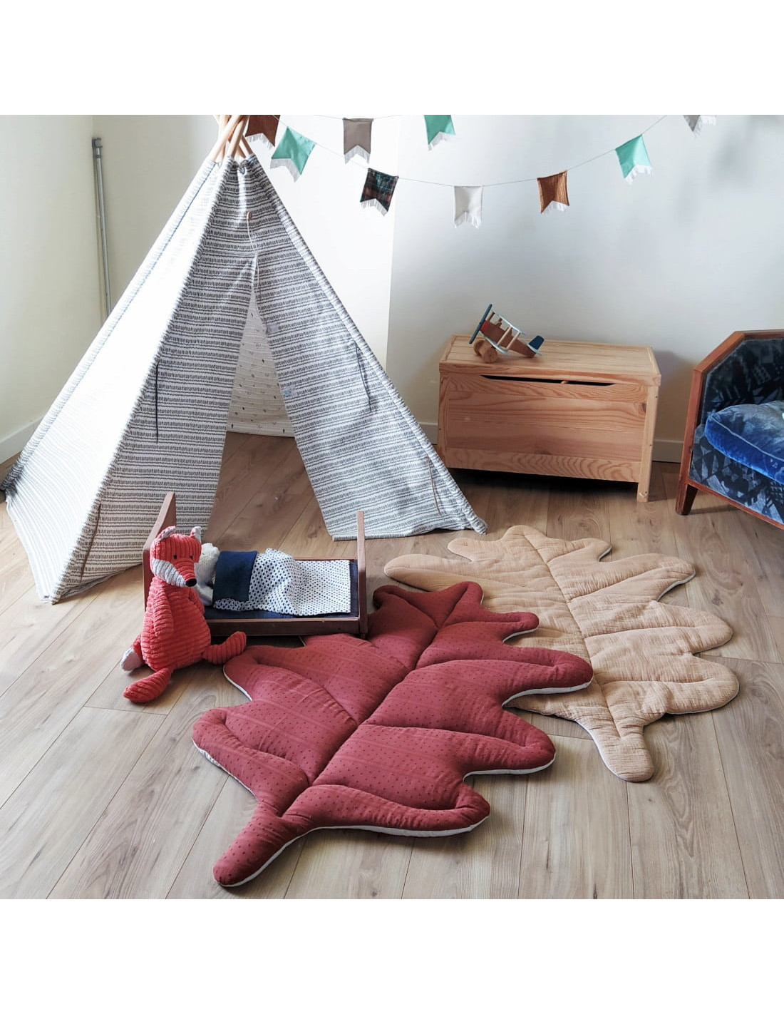 Tout moelleux au pied du lit des grands et des petits ou pour les tout petits en tapis d'éveil, cette grande feuille de chêne donne envie de se lover dessus !