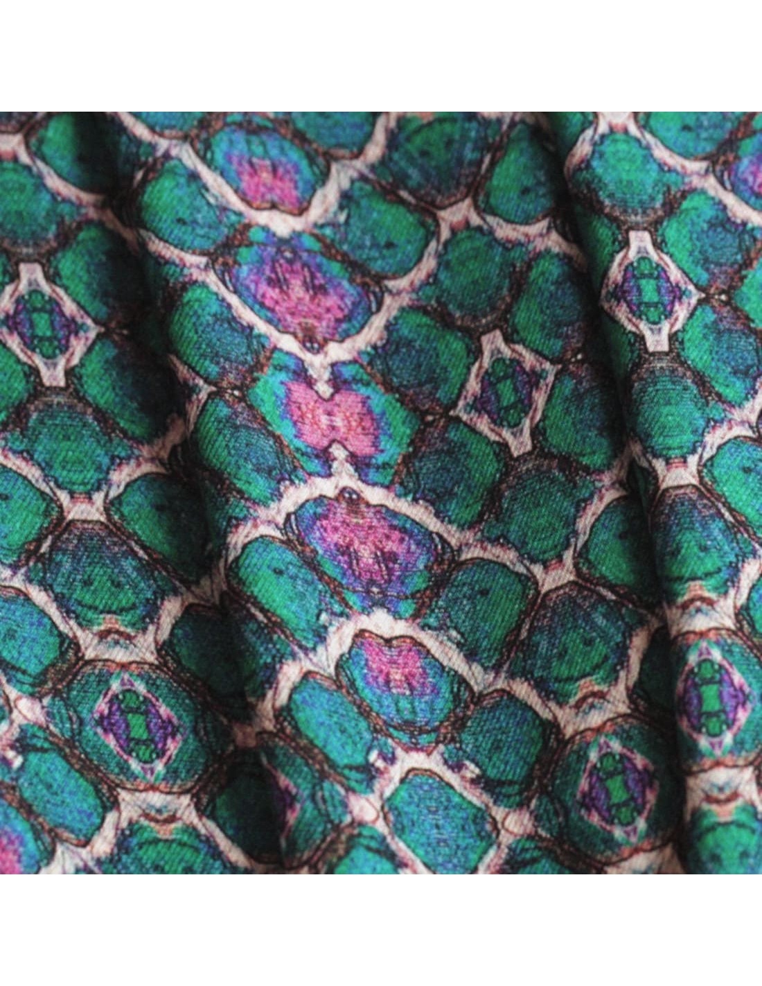 Pour porter de l'imprimé serpent dans sa garde-robe sans se tromper, c’est facile il faut oser : en total-look pour les plus téméraires ou en petites touches pour les plus frileuses ! Avec son vert et son motif graphique hypnotique, Félix sera parfait pour un look tendance : une combinaison, une robe bohème maxi, une jupe midi ou patineuse, un pantalon fluide...
