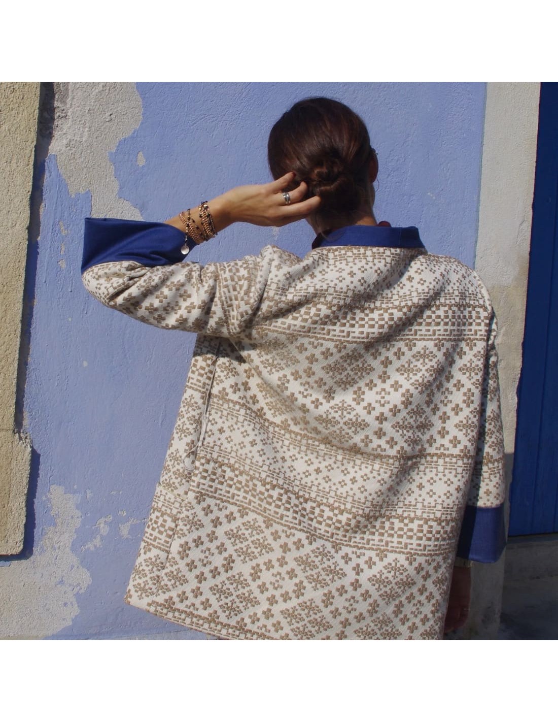 Avec sa coupe droite mais sans marquer pour autant la carrure, son col et ses manches façon kimono mais avec une ligne de blazer, SABLE est une veste de mi saison chic et confortable, dans l’air du temps et indémodable. Entièrement doublée pour des finitions impeccables avec un jeu d’empiècements qui affirme la ligne et assure de multiples interprétations, c’est surtout un modèle très accessible, parfait pour se lancer dans les vestes doublées.