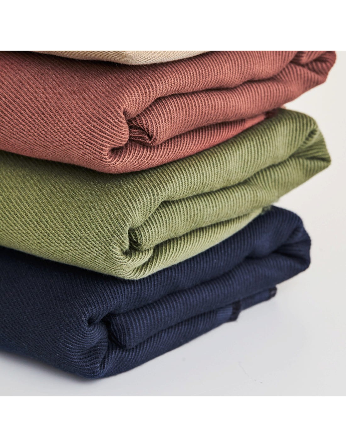 Un beau mélange de lin et de coton biologique dans un tissage sergé texturé au tomber lourd et souple.