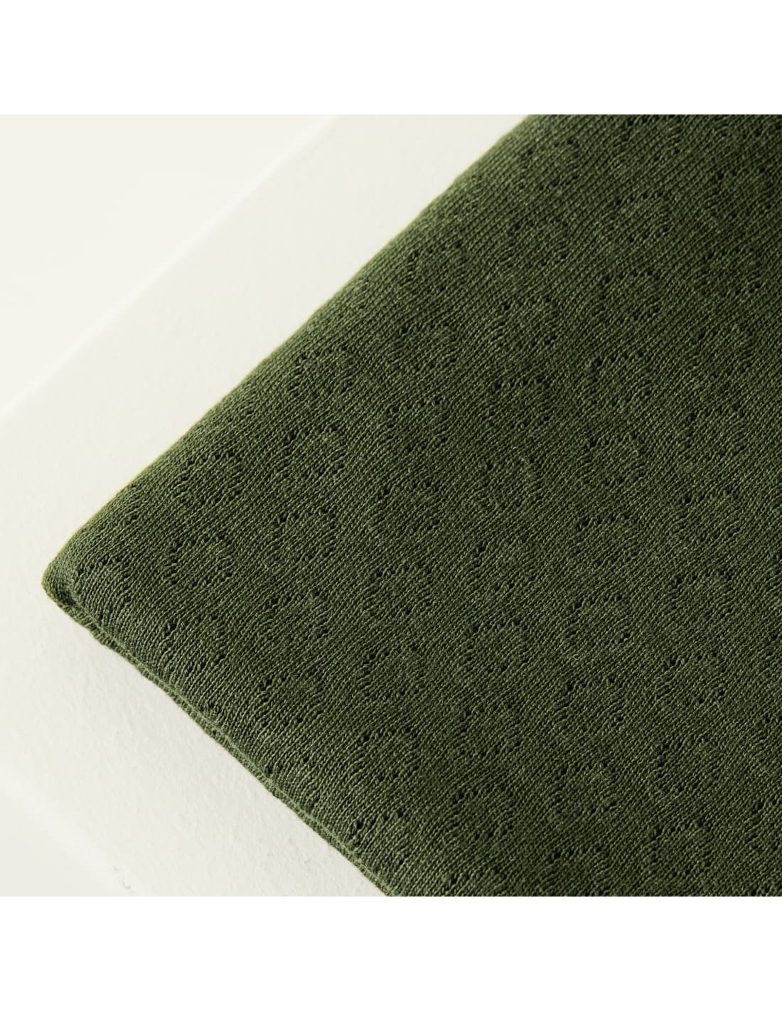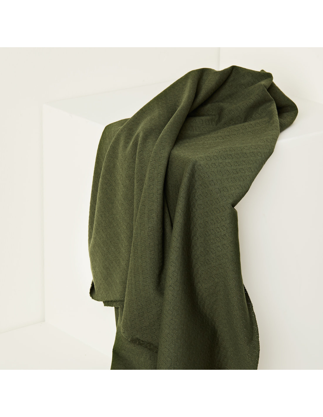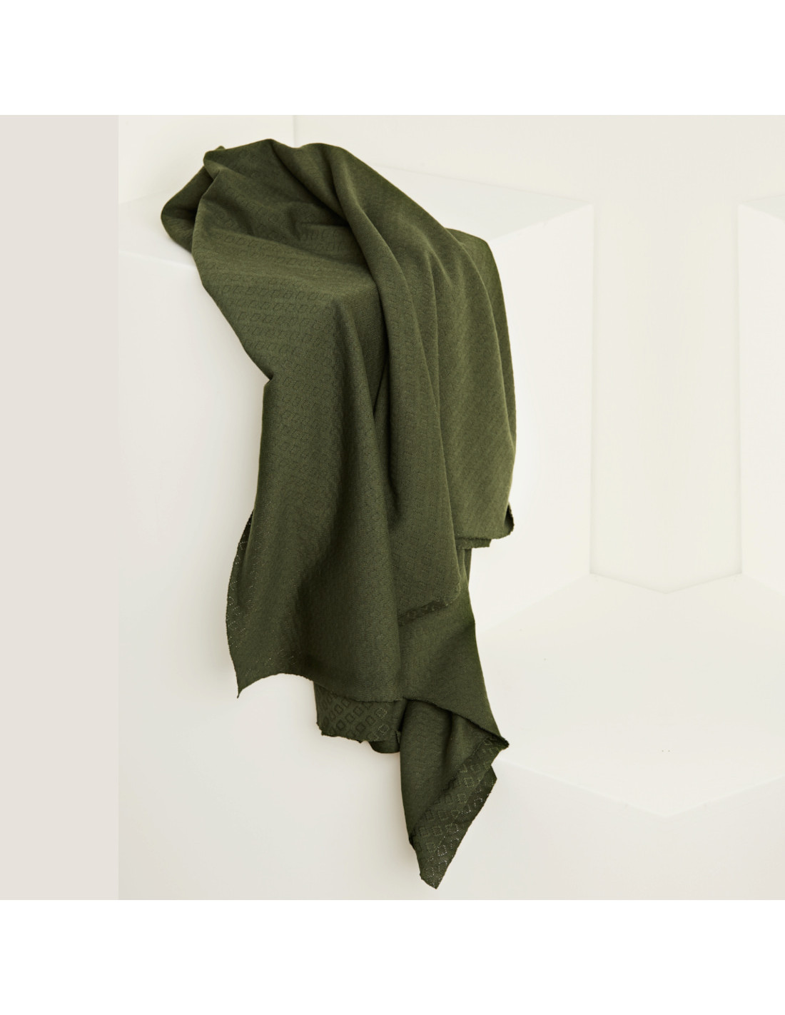 Jersey maille pointelle 100% coton biologique, couleur vert kaki et ajouré de motifs diamants, pour un petit basique confortable et qualitatif ! Ce jersey est relativement léger, plombant et très confortable à porter et possède une laize particulièrement large. Sa légère élasticité est uniquement due à son tricotage.