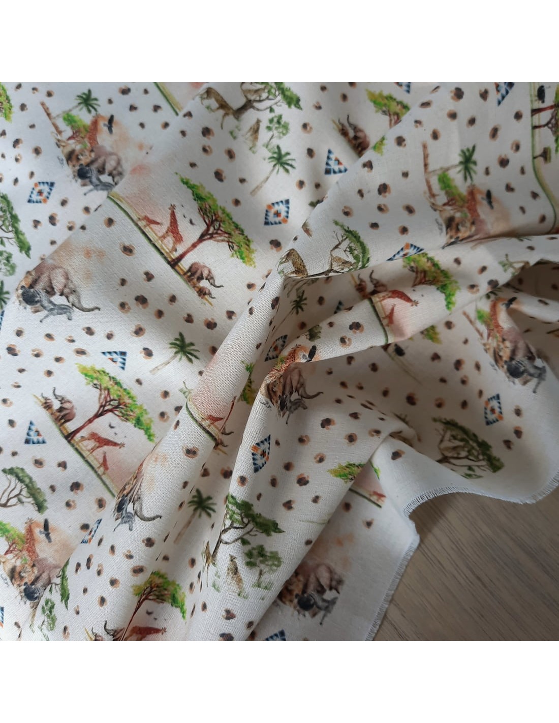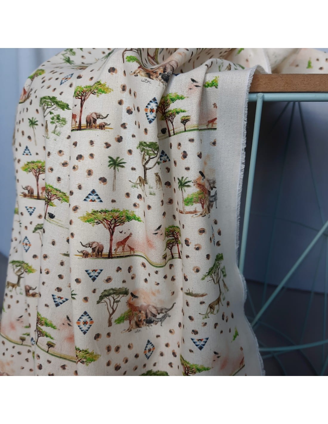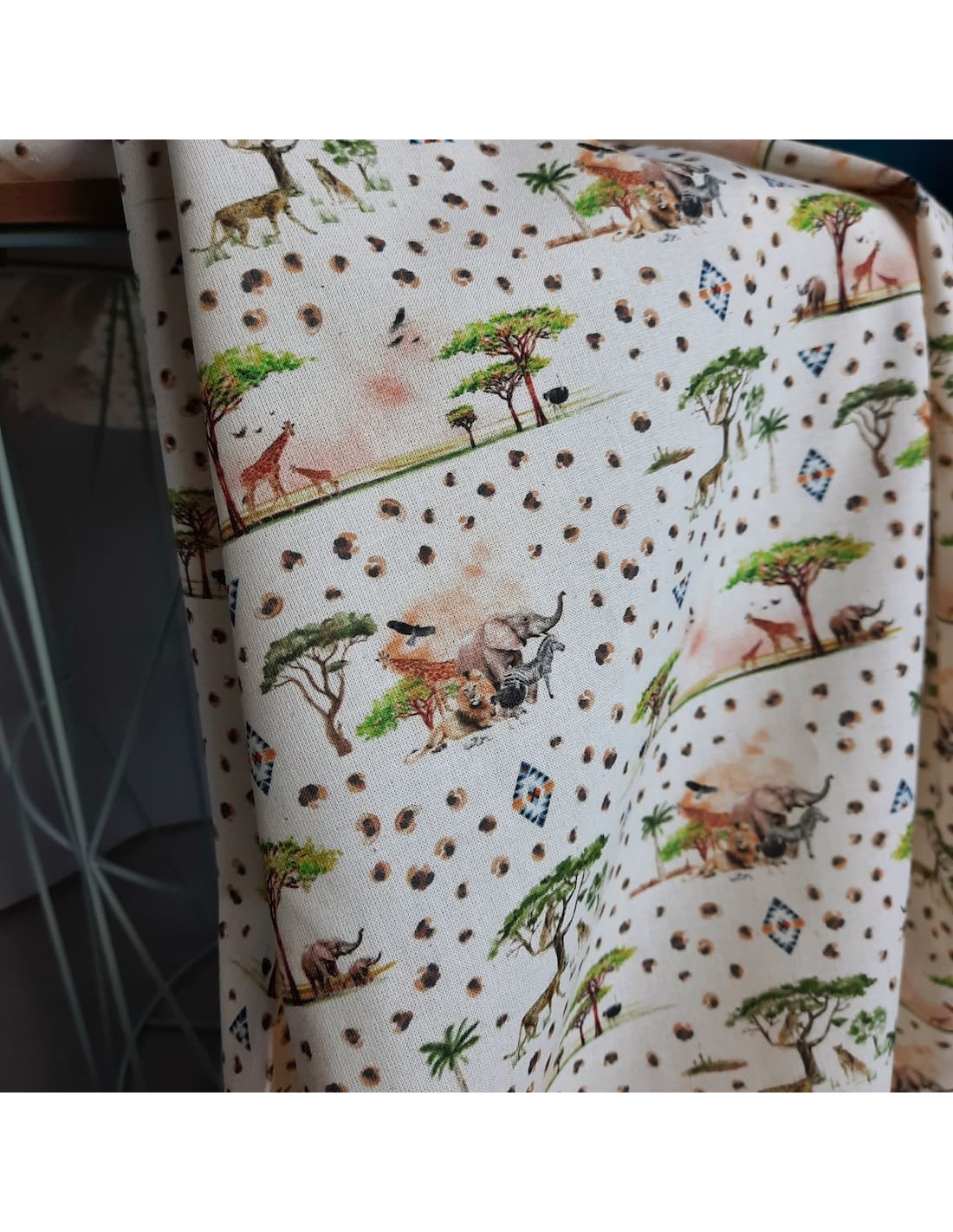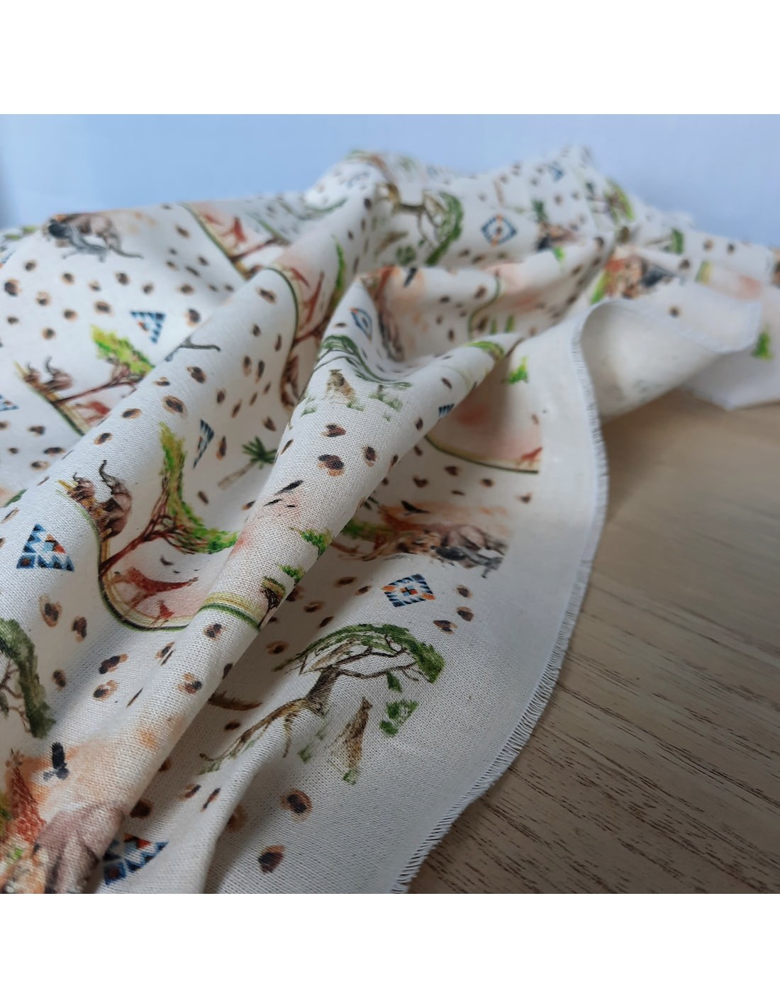 Légère, biologique et 100% coton, cette popeline donne une ambiance très naturelle avec son fond écru et ses animaux de la savane. Polyvalente et facile à coudre, elle conviendra pour beaucoup de projets, pour des accessoires ou encore des objets décoratifs.