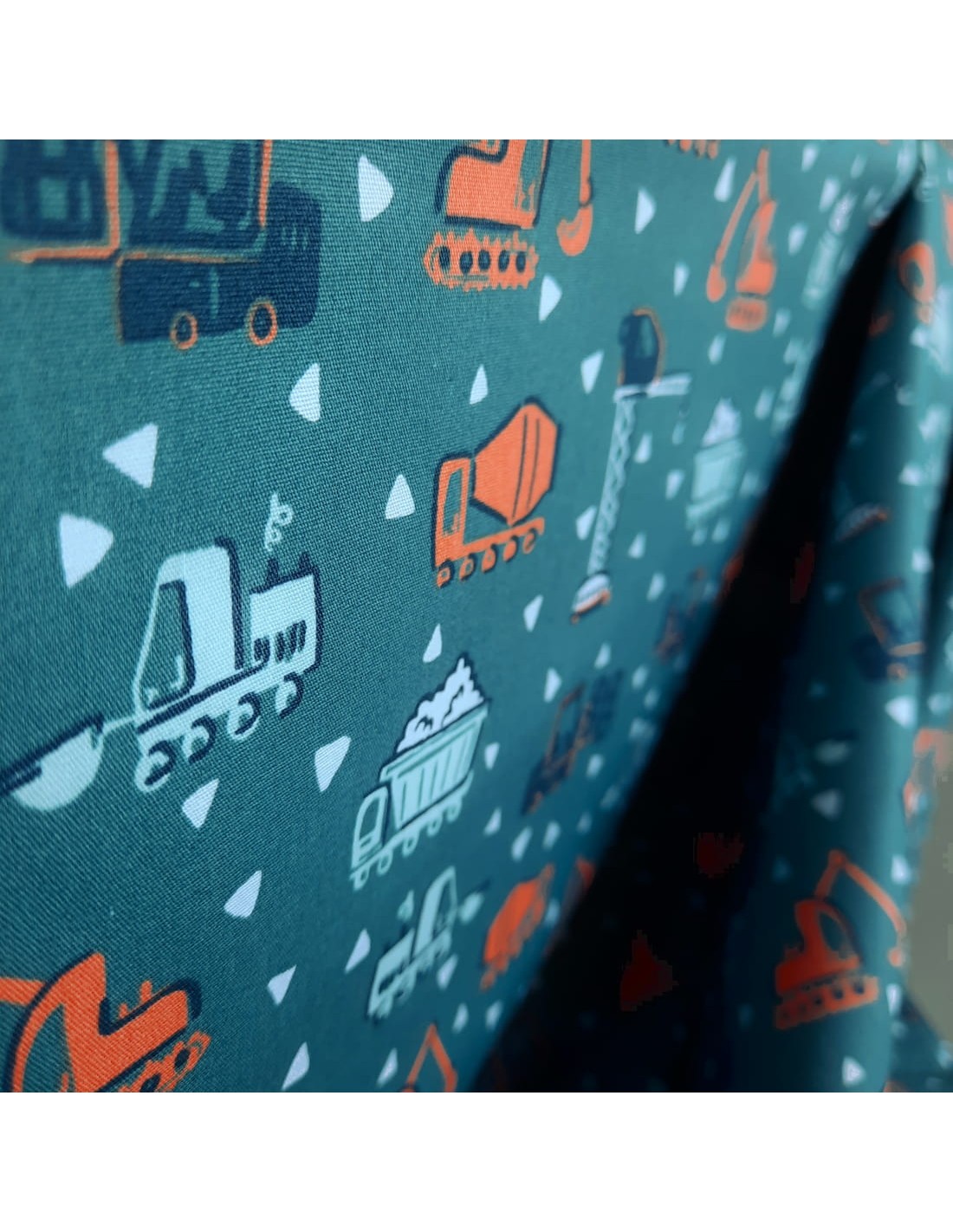 Popeline de coton biologique, Engins de chantier, Fond Bleu vert