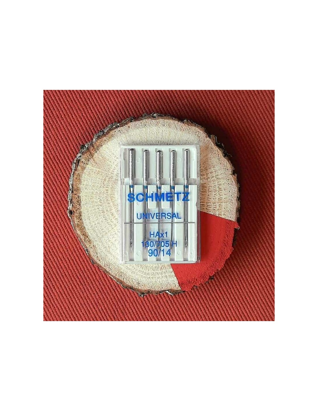 - Boîte de cinq aiguilles universelles pour machine à coudre, de la marque Schmetz.